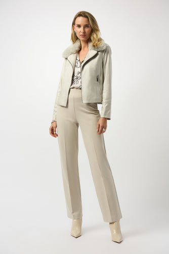 Foiled Suede Swing Jacket with Faux Fur Collar